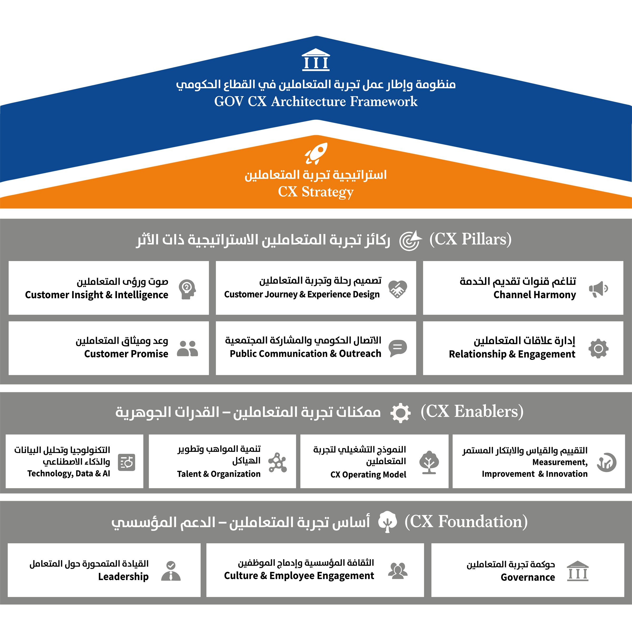 يسهم إطارنا المتكامل لتجربة المتعاملين في سد الفجوة بين الرؤية والتنفيذ، من خلال منظومة معمارية مرنة وقابلة للتطبيق والتوسع، تضمن التوافق مع الأولويات الوطنية وتتكامل مع أهداف الجهات الداخلية.